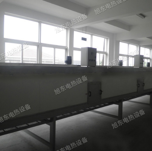 电加热平板线流水线隧道炉采用加热管外置式加热,将电能转化为热能,热量经低噪音高压风机吹入进风道,传入箱内,形成热风循环, 箱体设有对流搅拌技术,温度非常均匀,具有自动控温,调速,故障报警等特点,使用安全,方便,环保,节能等优点。